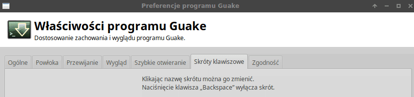 Skróty klawiszowe program Guake